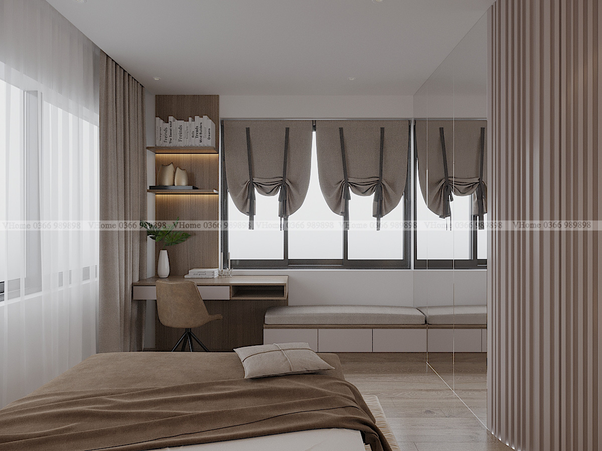 Phòng ngủ lớn có không gian làm việc riêng biệt..