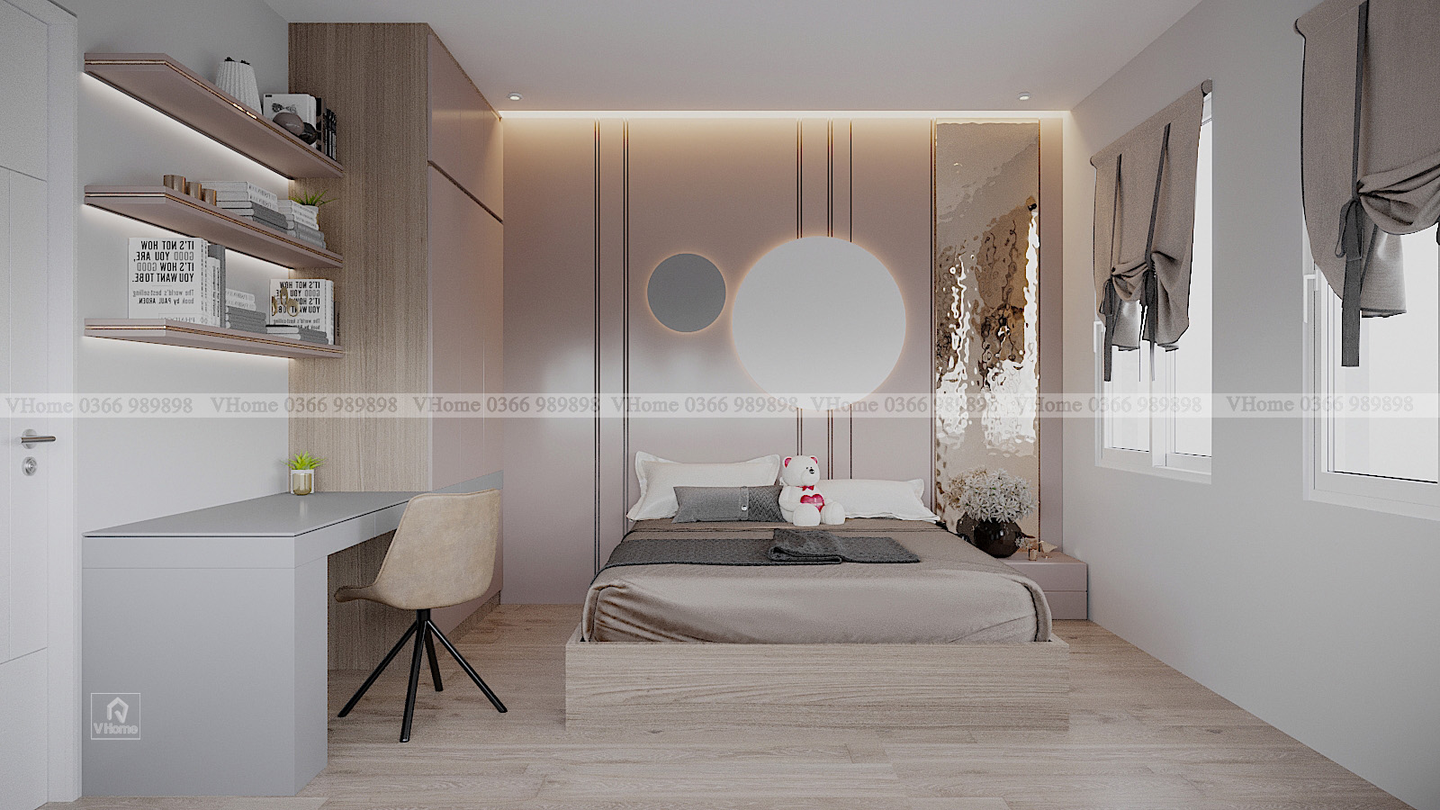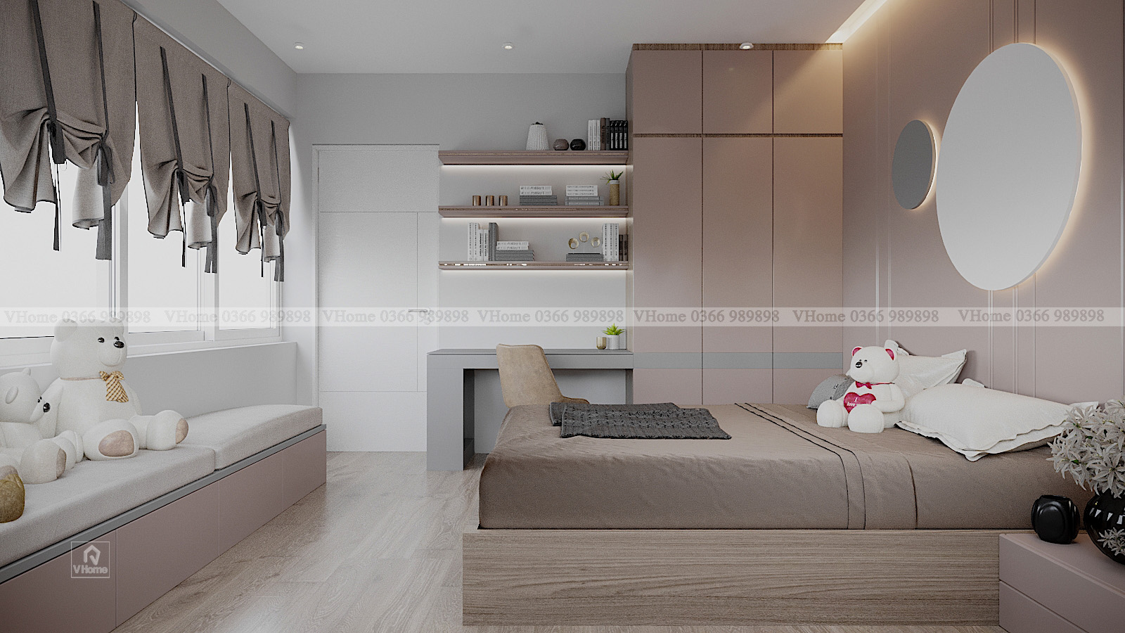 Phòng ngủ bé gái tông hồng nhẹ nhàng..